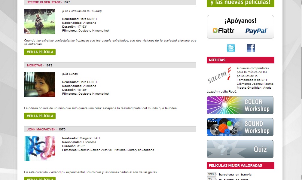 Cada película tiene una ficha descriptiva con el título, el año, la procedencia del film y una pequeña sinopsis, además durante tu visionado se ofrece la opción de ver los subtítulos en diferentes lenguas.