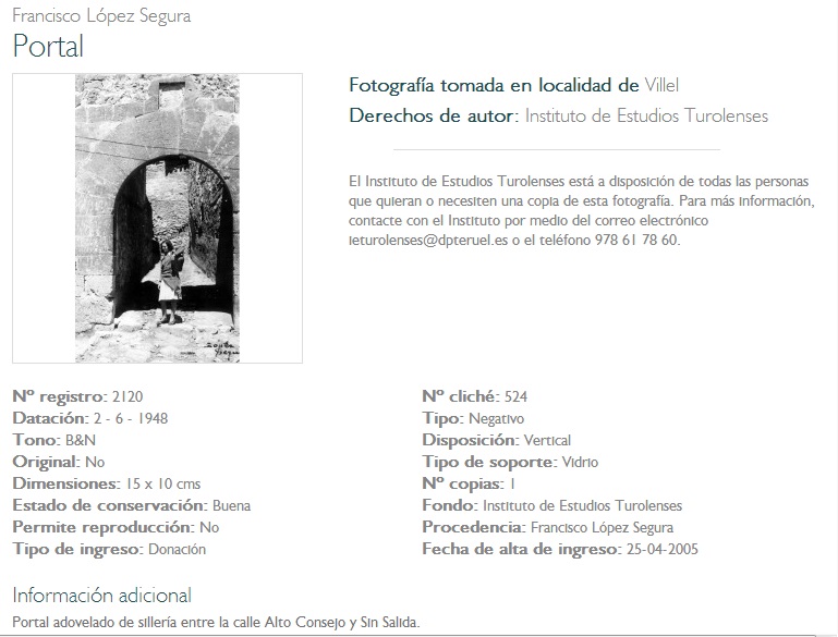 Además de estos fondos, el IET tiene copias de otras fotografías relacionadas con la provincia de Teruel pertenecientes a otros archivos: