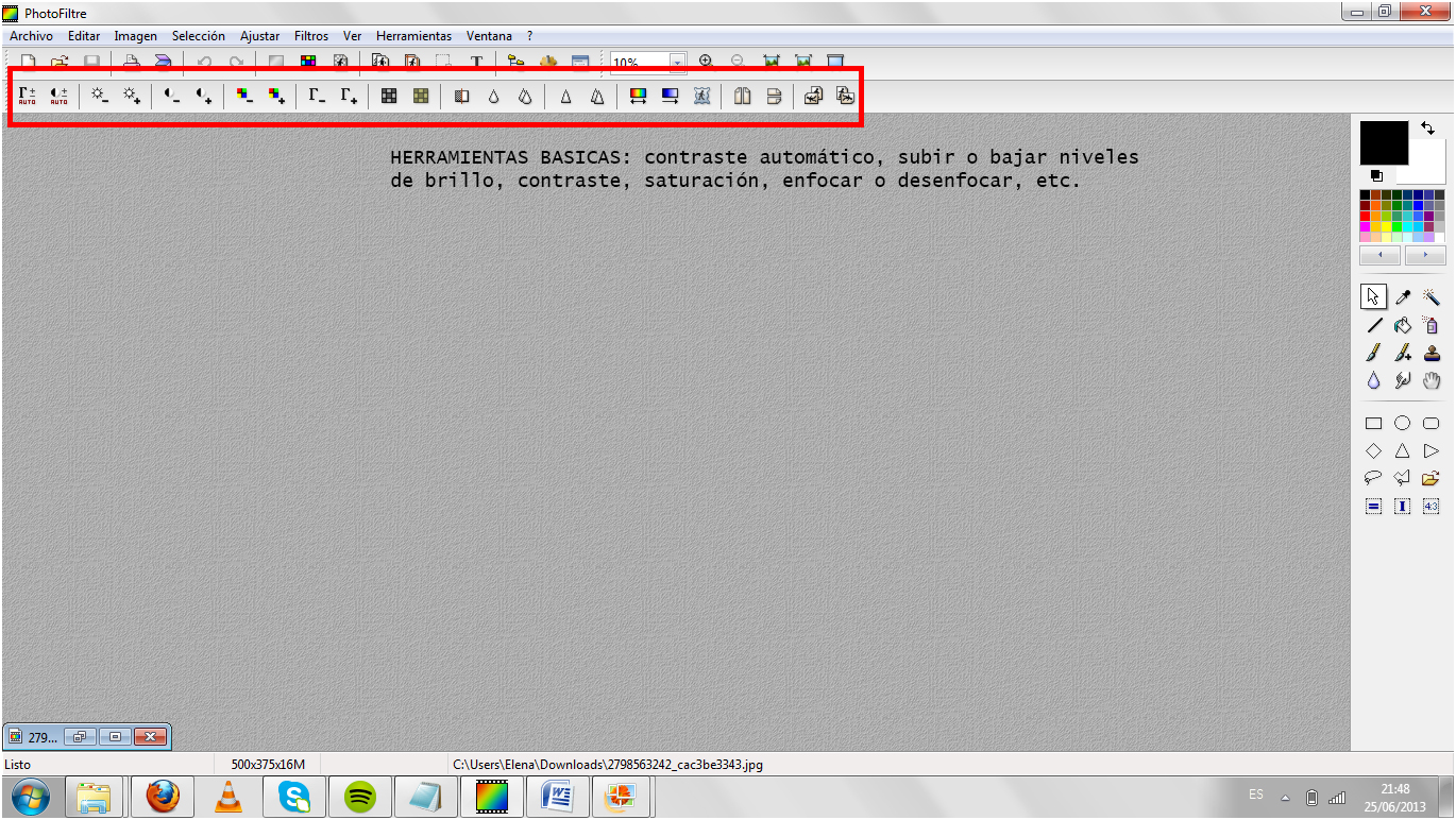 Nos vamos a centrar en uno de estos programas de libre acceso, PhotoFiltre, para mostraros unos pequeños ejemplos de cómo retocar una fotografía. Lo que aquí se va a explicar es brevemente la interfaz y el funcionamiento de las herramientas del programa, pero también desde su página web puedes obtener diferentes tutoriales según el ajuste que quieras hacer a la fotografía.