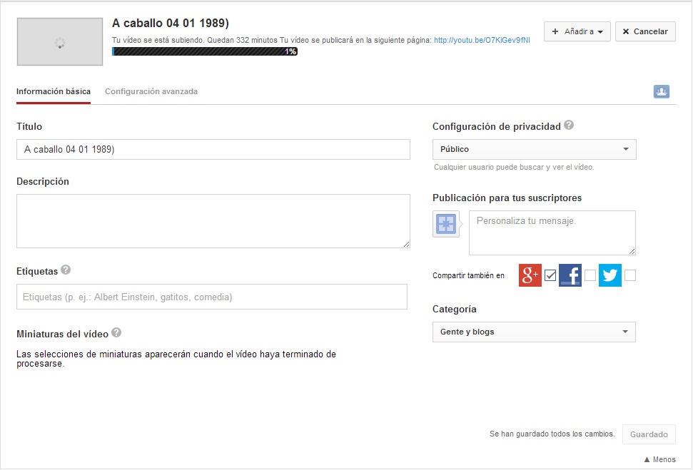 A la hora de subir un vídeo, tenemos varias pestañas para rellenar: