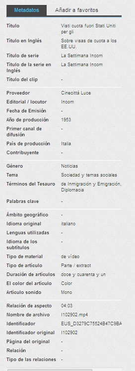 Dentro de lo que es el archivo podemos consultar tanto el conjunto general como acotar nuestra búsqueda en vídeos, imágenes, texto o audio. Además tenemos un submenú que divide los archivos por temática, género, idiomas, proveedores y décadas.