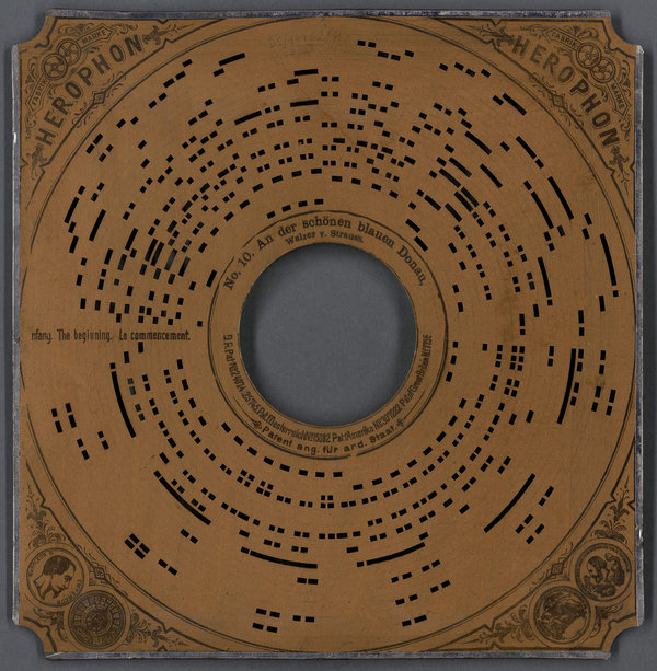 En esta colección, es donde encontramos los Discos Perforados. Discos que se utilizaron para la reproducción del sonido en el siglo XIX empleaban aparatos reproductores (los “tocadiscos” más primitivos) basados en mecanismos neumáticos similares al del organillo (como en los modelos Ariston, Ariosa o Herophon) o de caja de música (como en el Symphonion). La actual colección de discos perforados en cartón o en metal de la BNE es de alrededor de un centenar de piezas, todas ellas fabricadas entre 1880 y 1900.