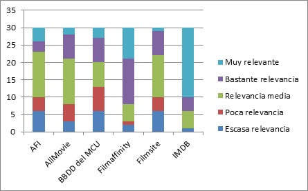 Para terminar este es el resultado de la valoración que realizasteis sobre las siguientes páginas: AFI, Allmovie , Base de datos de películas del Ministerio de Cultura , Filmaffinity , Filmsite , IMDB .