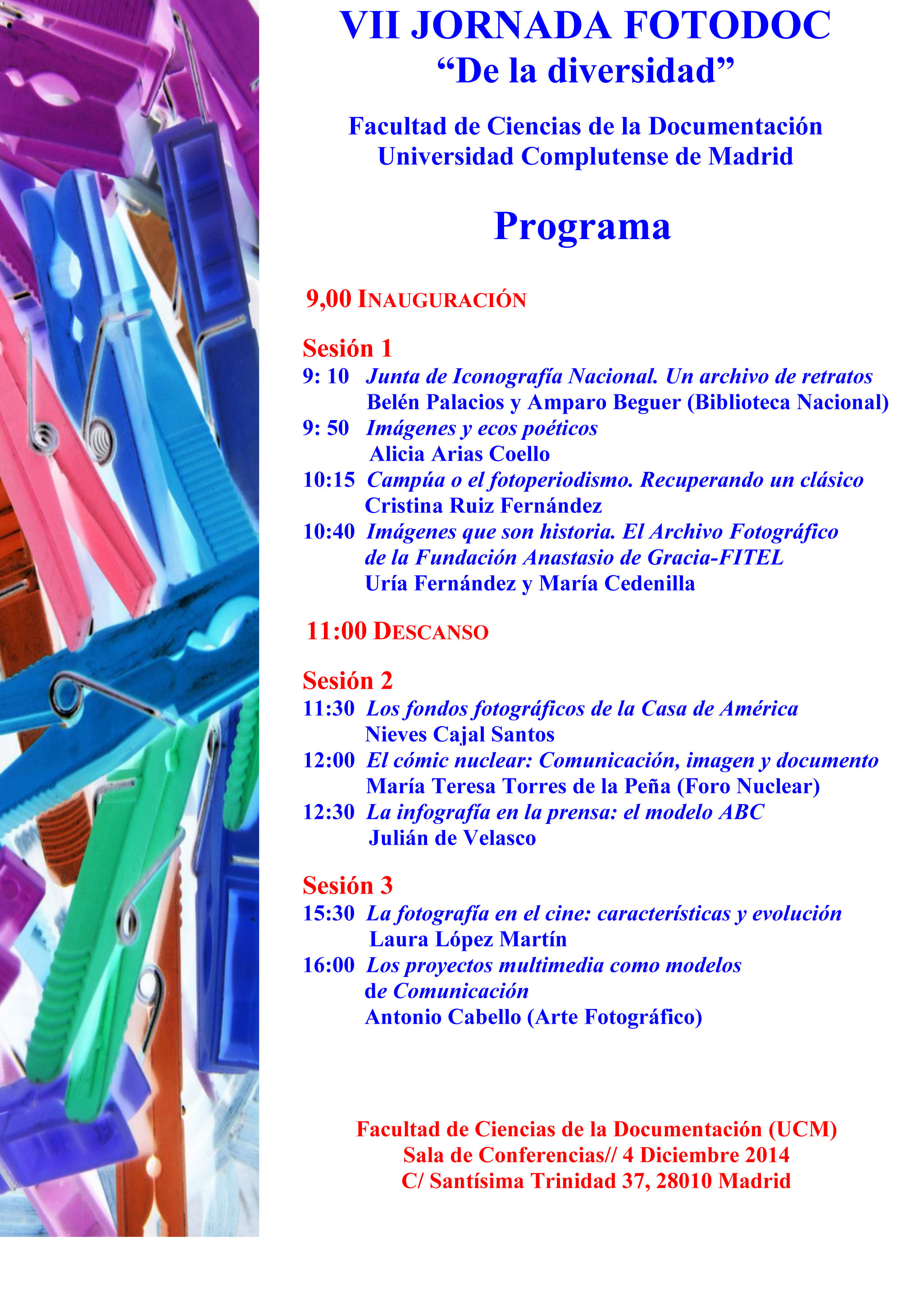 El jueves 4 de diciembre de 9:15 a 16:00 se desarrollara la séptima edición de estas jornadas en la Facultad de Ciencias de la Documentación de la Universidad Complutense de Madrid, como viene siendo habitual.