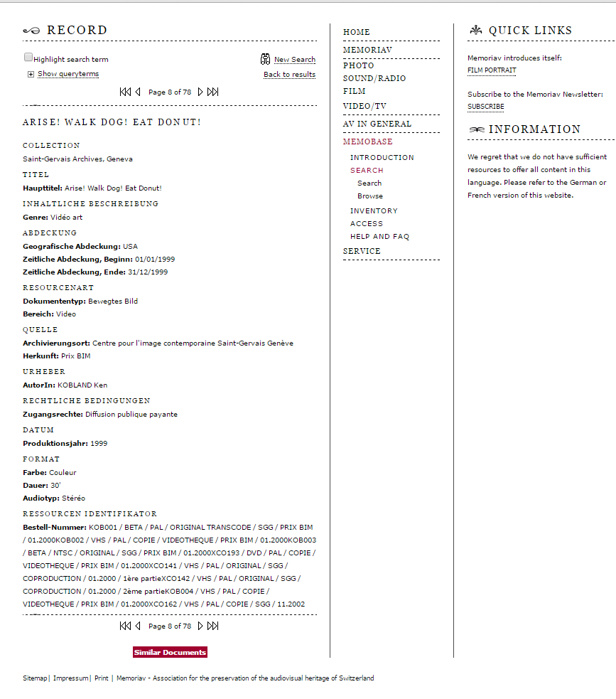 Memoriav aboga por un mejor acceso a los inventarios de vídeo, por lo que, por ejemplo, las producciones de televisión guardados con su ayuda pueden ser puestas a disposición del público en general.
