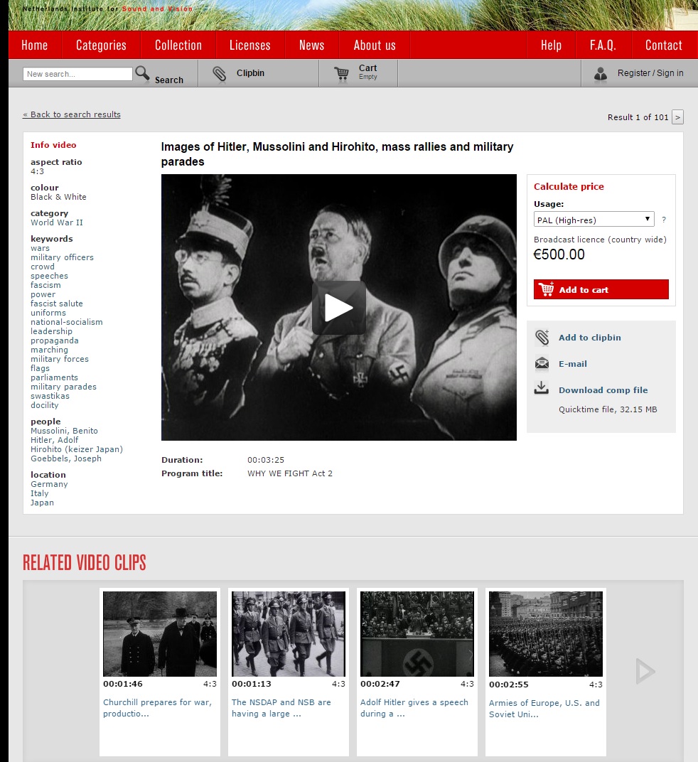 Dutchfootage.com se divide en las siguientes categorías: General, Nature, Landscapes, Second World War, Royalty y Sports.