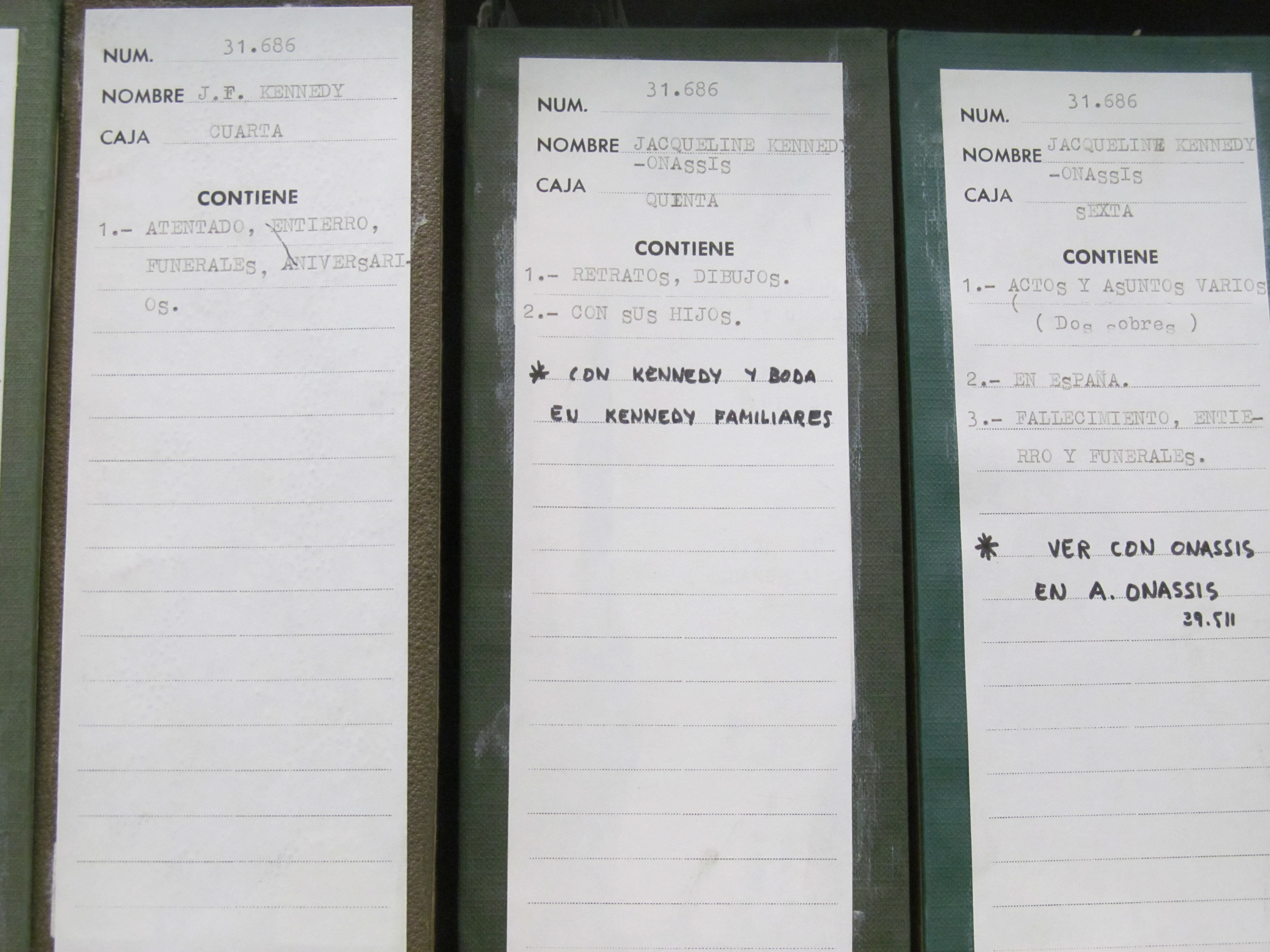 - De forma independiente a la clasificación anterior, a las personas se les asignaba un número y si producían mucha información se subdividía mediante clasificación temática: visitas, viajes al extranjero, premios, audiencias civiles…