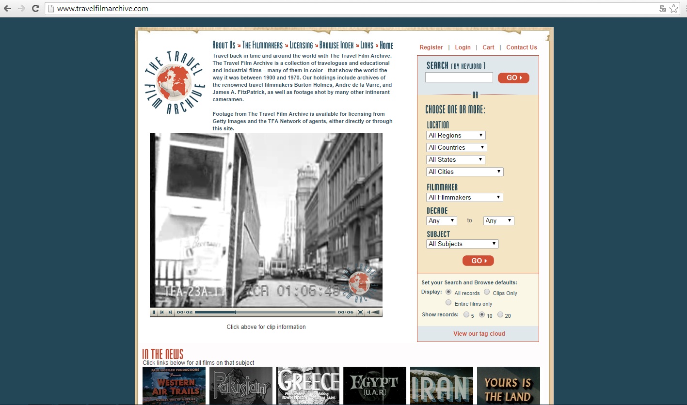 Travel Film Archive alberga una amplia colección de videos en b/n y color, grabados en cinco continentes a lo largo de 70 años, desde 1900 hasta 1970. Se presentan como “una colección de películas educativas e industriales que muestran el modo en que era el mundo entre el año 1900 y 1970”. Sus archivos cuentan con fondos de Burton Holmes, Andre De La Varre, Carl Dudley y James A. Fitzpatrick.